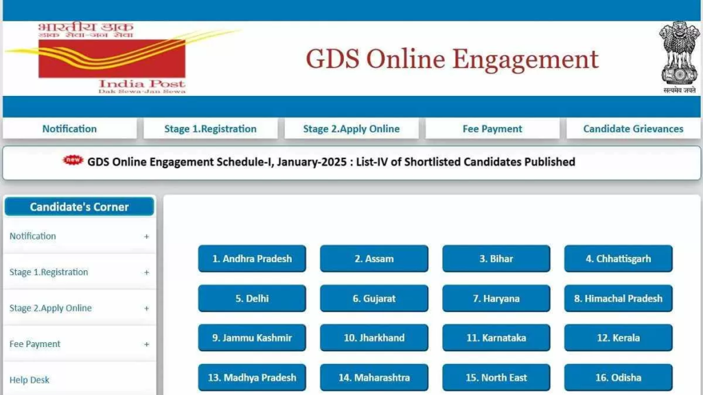 3. The India Post GDS Online Engagement Portal homepage will appear.